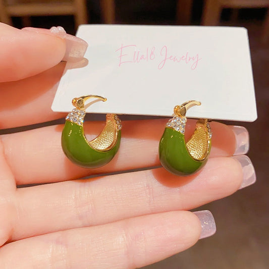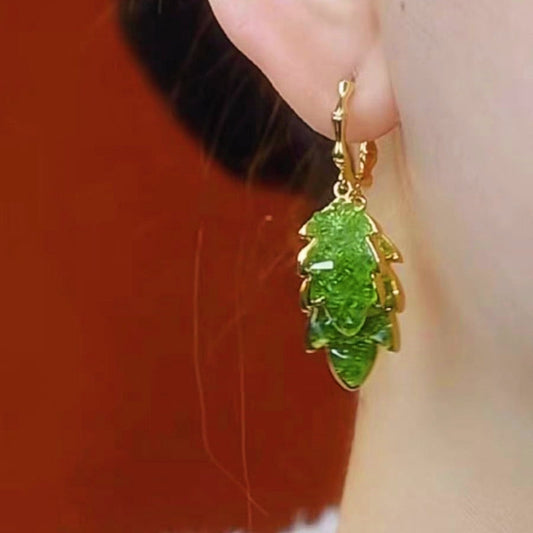14K Gold-Plated Elegant Green Crystal Leaf Earrings
