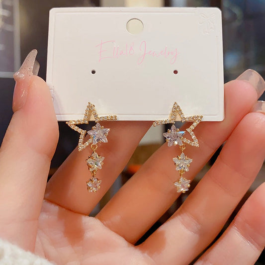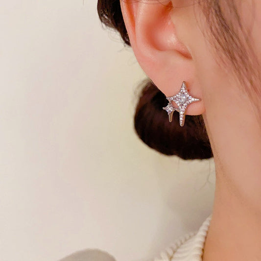 14K Gold-Plated Elegant Zircon Bling Star Studs
