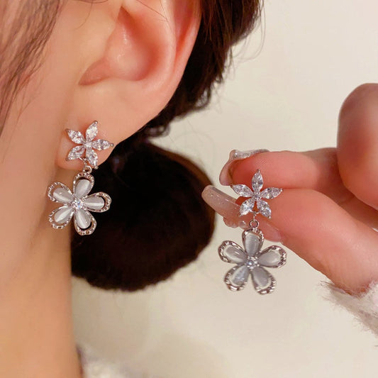14K Gold-Plated Elegant Zircon Opal Flower Earrings