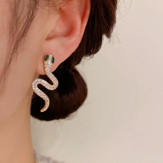 14K Gold-Plated Elegant Zircon Snake Earrings