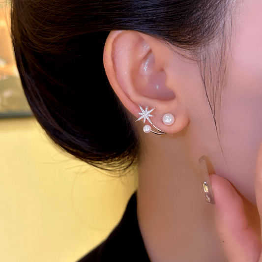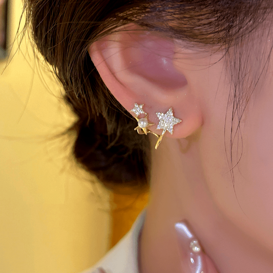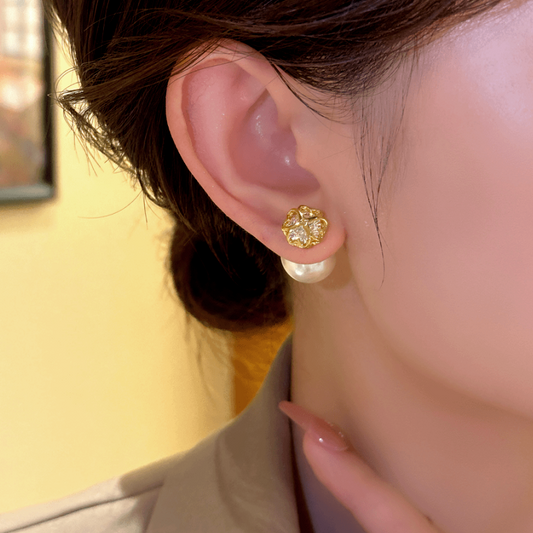 14K Gold-plated Zircon Butterfly Pearl Earrings