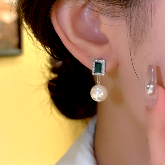 14K Gold-Plated Emerald Cube Pearl Earrings