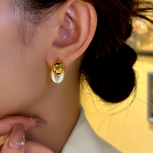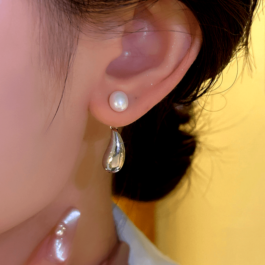 14K Gold-Plated Elegant Two-Piece Irregular Drop Pearl Earrings