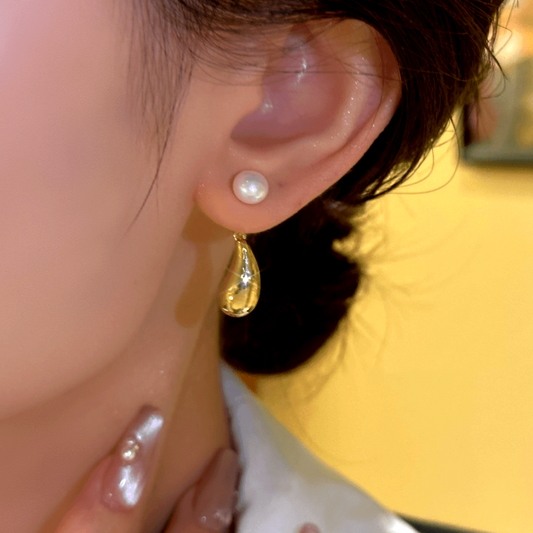 14K Gold-Plated Elegant Two-Piece Water Drop Earrings