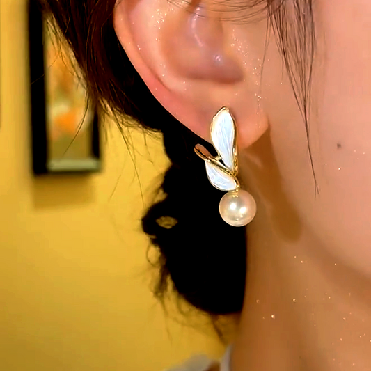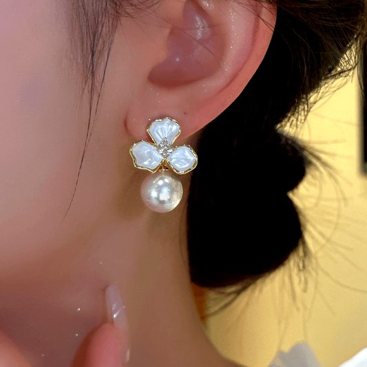 14K Gold-Plated Elegant White Flower Pearl Earrings