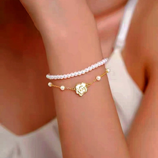 14K Gold-plated Exquisite Pearl Camellia Double-Layer Bracelets