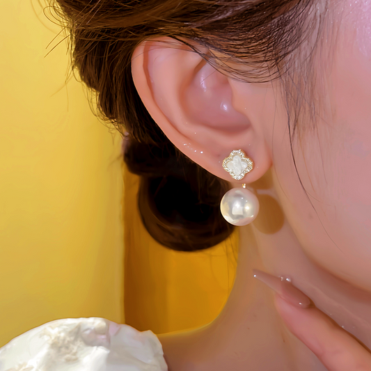 14K Gold-plated Elegant Two-Piece Four-Leaf Clover Pearl Earrings