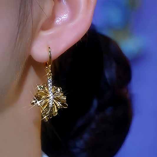 14K Gold-plated Elegant Zircon Bow Shell Pearl Earrings