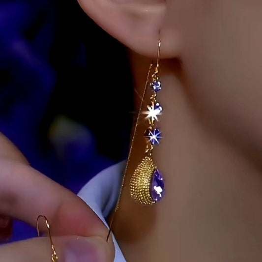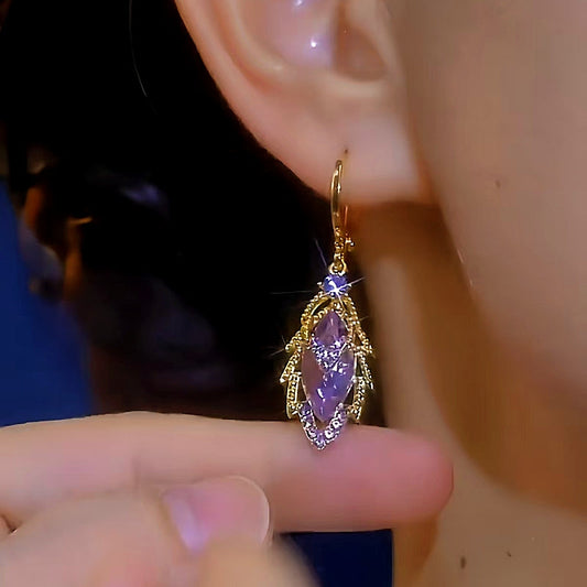 14K Gold-Plated Rhombus Purple Crystal Earrings