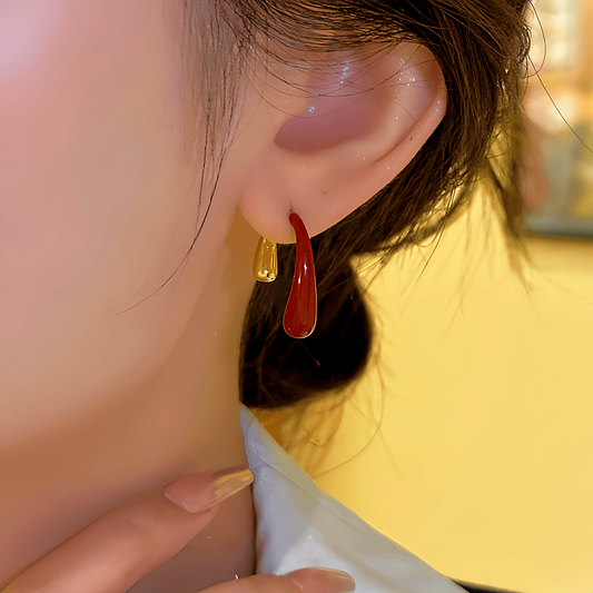 14K Gold-Plated Red And Golden Water Drop Earrings