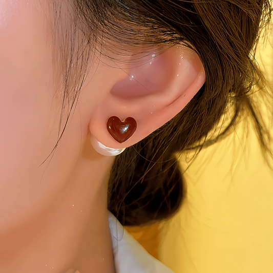 14K Gold-Plated Brown Zircon Diamond Heart Earrings