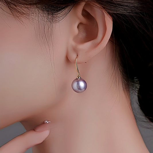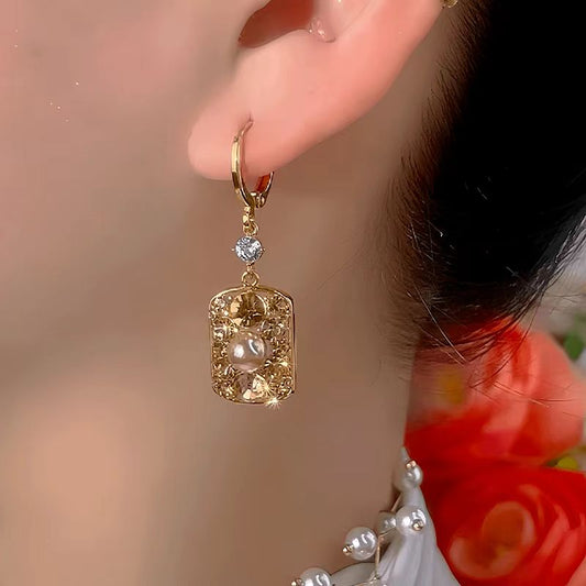 14K Gold-Plated Luxury Brown Diamond Pearl Earrings
