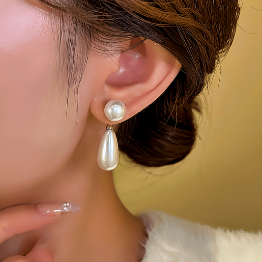 14K Gold-Plated Luxury Front And Back Pearl Crystal Tassel Earrings