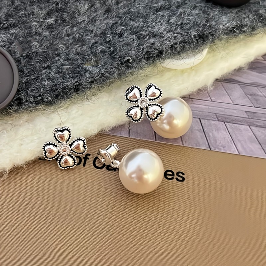 14K Gold-Plated Elegant Pink Diamond Heart Pearl Earrings