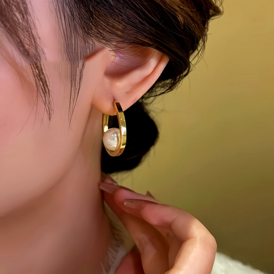 14K Gold-Plated Hollow Diamond Pearl Stud Earrings