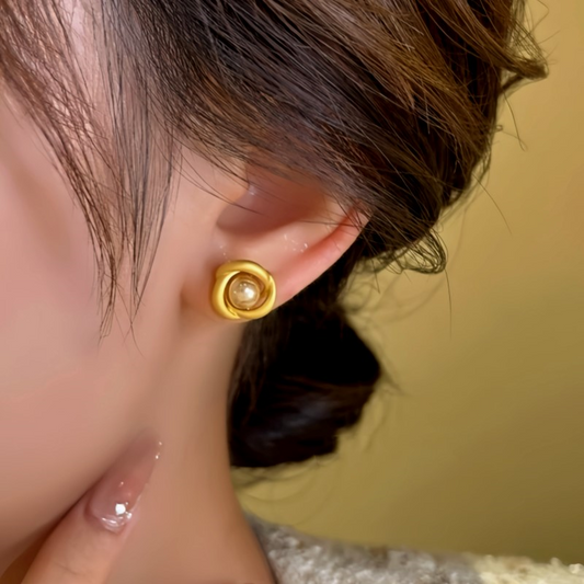 14K Gold-Plated Pearl Frosted Swirl Bead Stud Earrings