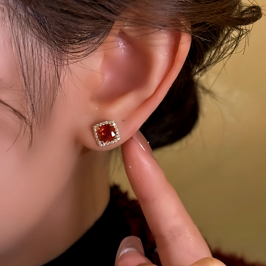 14K Gold-Plated Red Zircon Stud Earrings