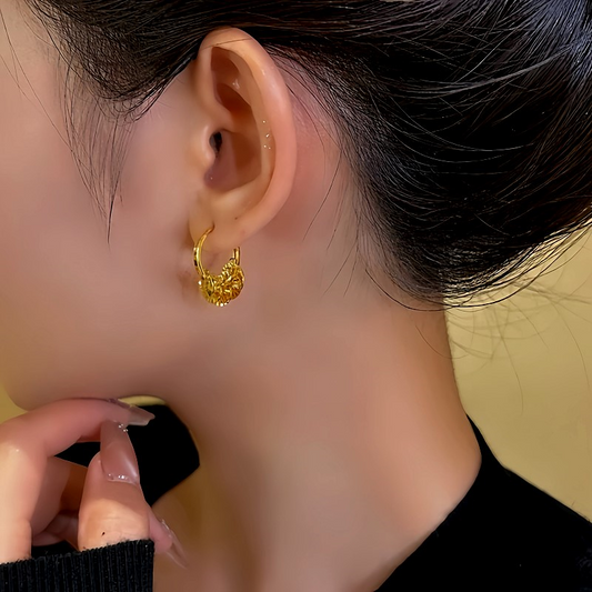 14K Gold-Plated Hollow Diamond Hoop Earrings