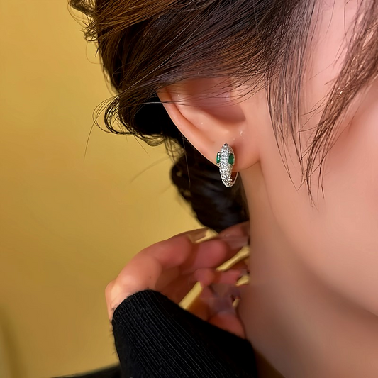 14K Gold-Plated Zircon Green-Eyed Snake Hoop Earrings