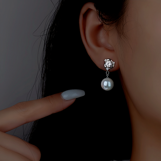 Sterling Silver Luxury Elk Diamond Heart Pearl Necklace