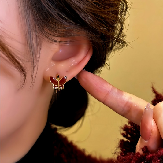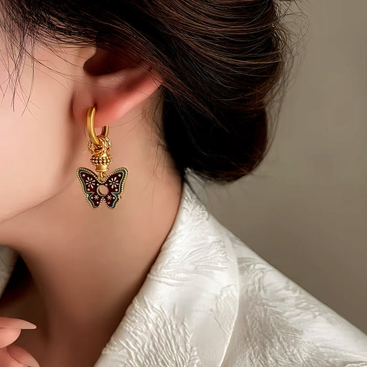 14K Gold-Plated Red Oil Drop Butterfly Hoop Earrings