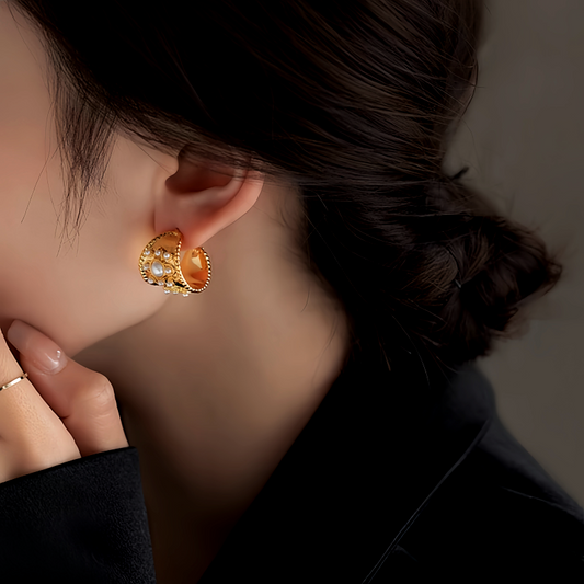 14K Gold-Plated Cat's Eye Stone Hoop Earrings