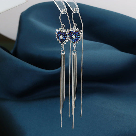 Sterling Silver Zircon Bear Tassel Threader Earrings