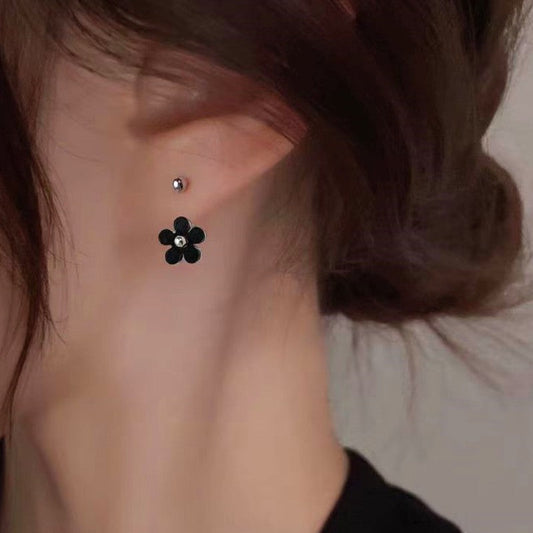 Sterling Silver Black Flower Earrings