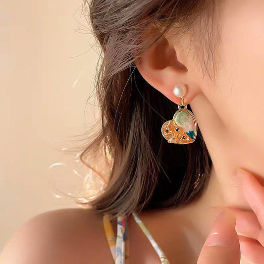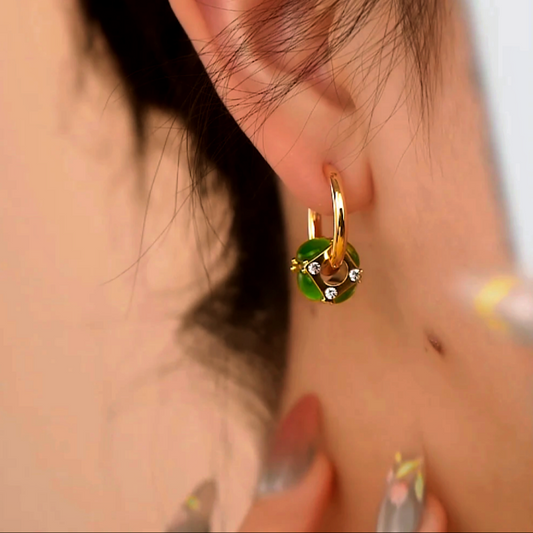 14K Gold-Plated Rotatable Green Zircon Earrings