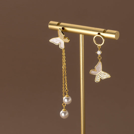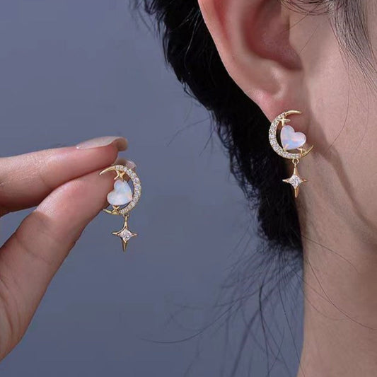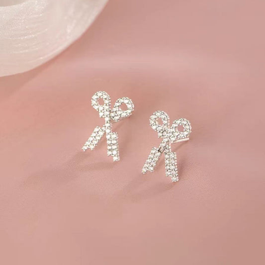 14K Gold-Plated Cat's Eye Bling Bow Stud Earrings