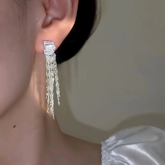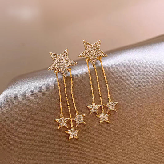 14K Gold-Plated Elegant Diamond-Filled Starry Sky Tassel Earrings