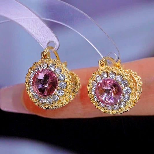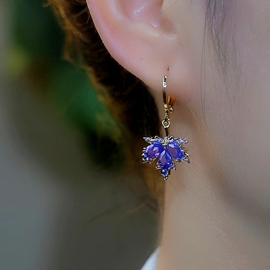 14K Gold-Plated Elegant Zircon Purple Maple Leaf Earrings