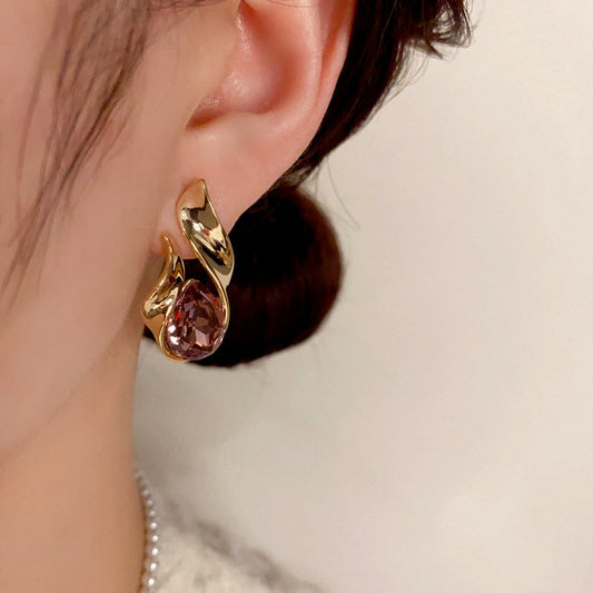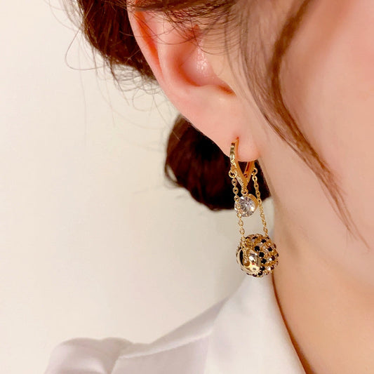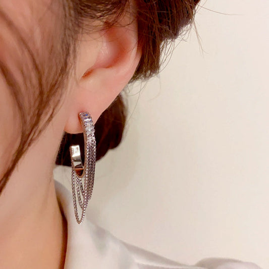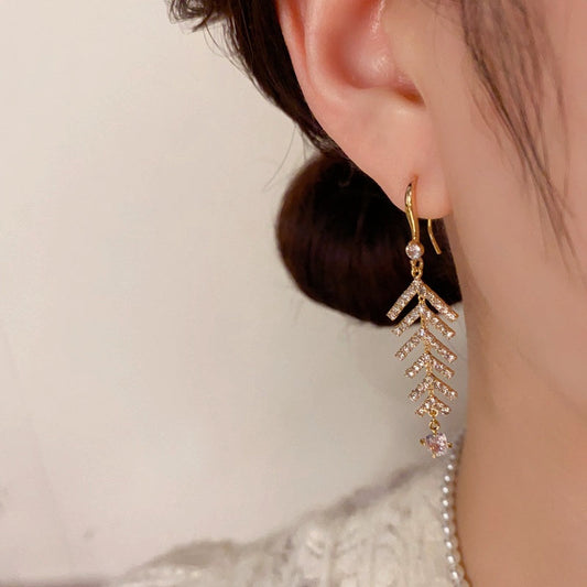 14k Gold-Plated Simple And Unique Zircon Leaf Tassel Ear Hooks