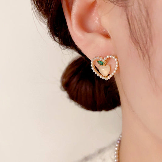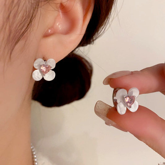 14K Gold-Plated Heart-Design Rotating Flower Studs