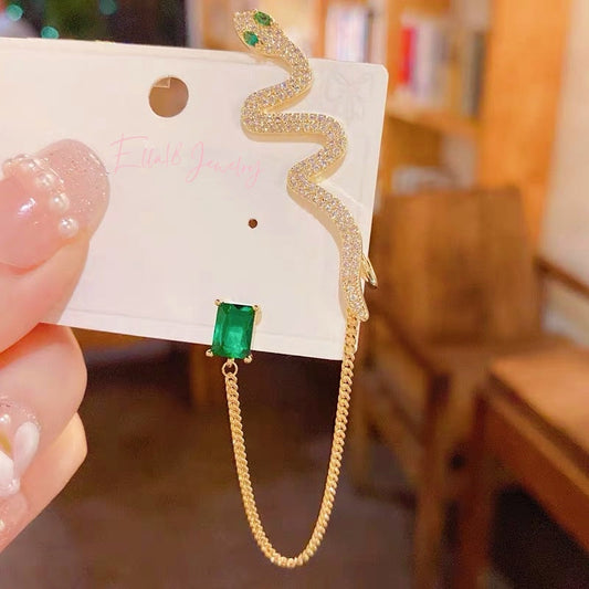 14K Gold-Plated Zircon Snake Curved Ear cuff Earrings