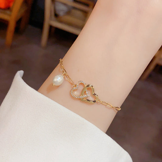 14K Gold-plated Exquisite Double Love Heart Pearl Bracelets