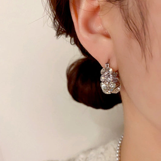 14k Gold-Plated Luxury Full Diamond Silver Hoop Earrings