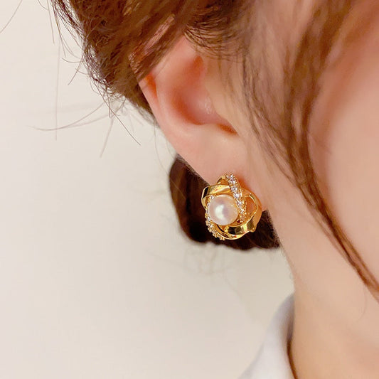 14k Gold-Plated Luxury Wrapped Pearl Stud Earrings