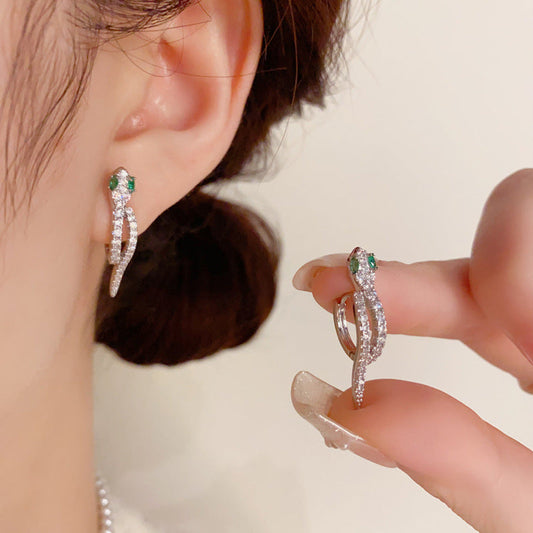 14k Gold-Plated Zircon Snake Hoop Earrings