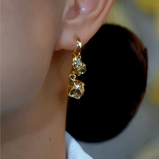 14K Gold-Plated Luxury Brown Cube Earrings