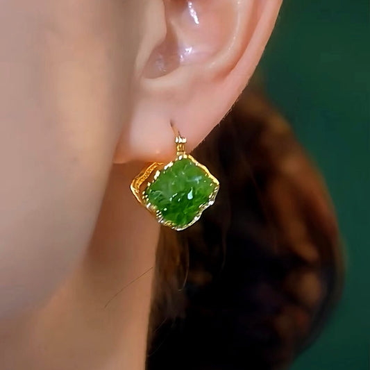 14K Gold-Plated Summer Green Crystal Cube Earrings