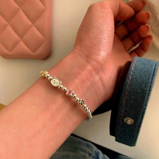 Sterling Silver Colorful Drip Glaze Flower Bear Beaded Bracelets