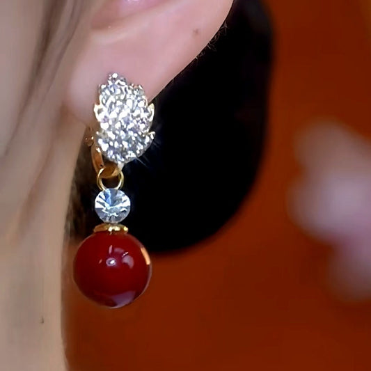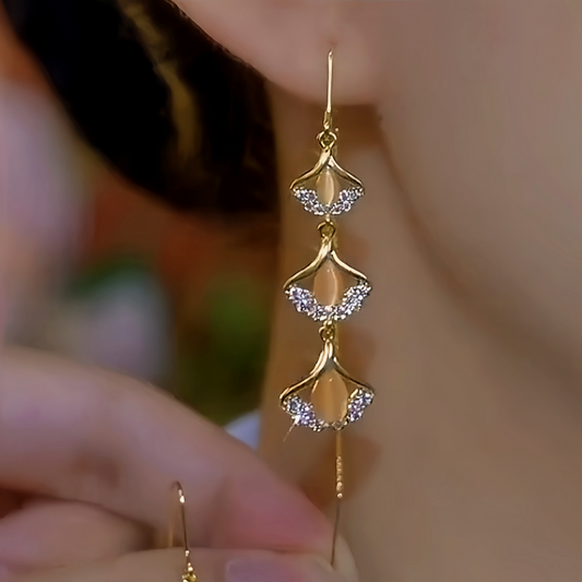 14K Gold-Plated Luxury Cat's Eye Four-Leaf Flower Earrings