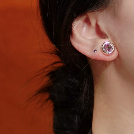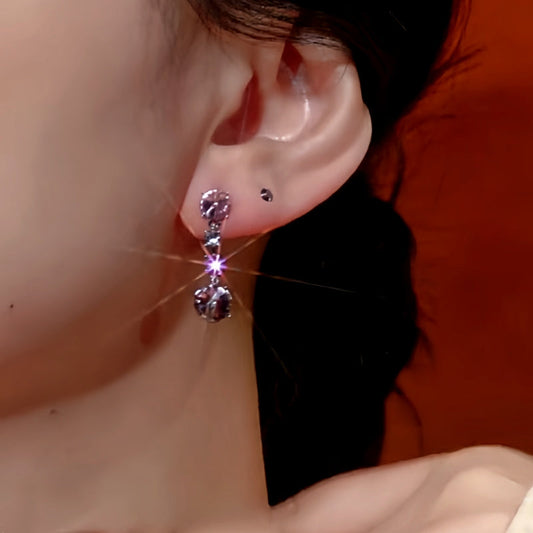 14K Gold-Plated Elegant Zircon Purple Pearl Earrings