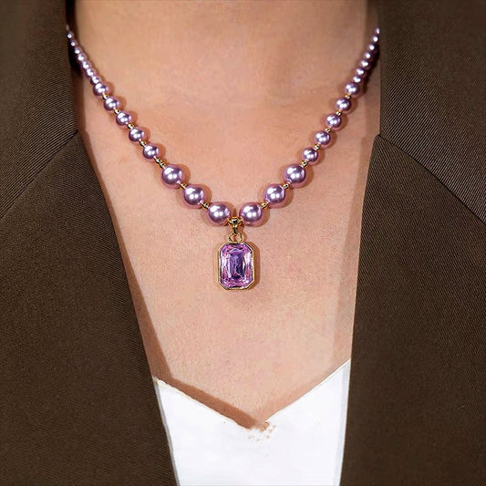 14K Gold-Plated Purple Zircon Diamond Pearl Necklace