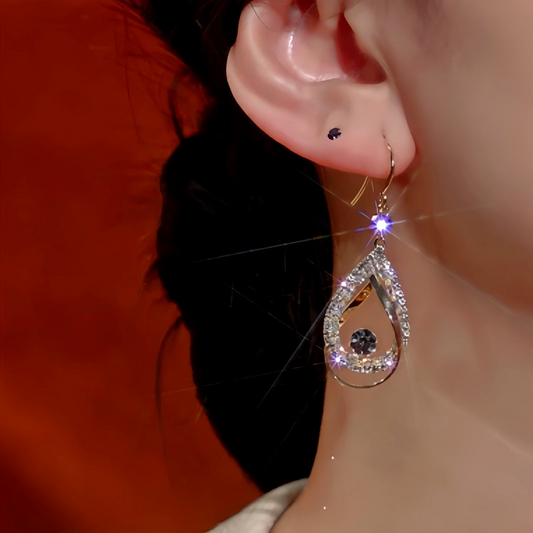 14K Gold-Plated Zircon Hollow Water Drop Ear Hook Earrings