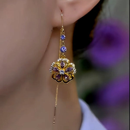 14K Gold-Plated Plum Blossom Flower Threader Earrings