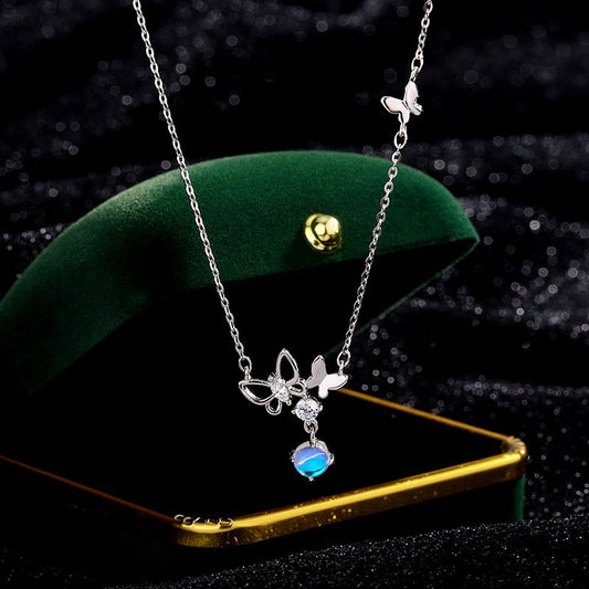 Sterling Silver Butterfly Moonstone Tassel Necklace