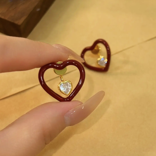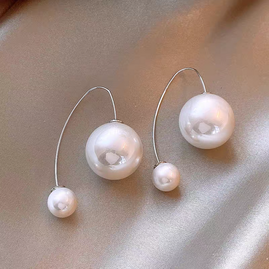 Sterling Silver Heart-Design Artificial Pearl Stud Earrings