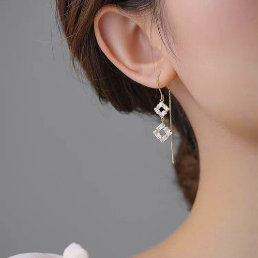 Sterling Silver Wavy Diamond Tassel Threader Earrings